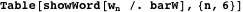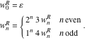 We need to apply words describing moves to configurations of toads and frogs. These words are juxtapositions of powers of symbols taken from the set {1, 2, 3, 4}, the powers being used as a shorthand to indicate repetitions of their respective base. Words will be described by a list of pairs similarly as those expressing the canonical factorization of a positive integer number. Because these words grow quite rapidly, we will work with them factorized, their type being