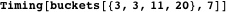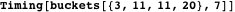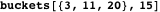 For instance, with three buckets of capacities 3, 11, and 20, the steps necessary to obtain 1 liter are as follows.