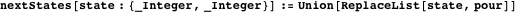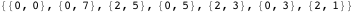 are coprime. If this is the case, we have several ways to proceed. Each of them can be described by a sequence of ordered pairs accounting for the states through which we pass at each step towards our goal. Consider for instance, one of the shortest sequences that solves the problem for capacities 2 and 5: {{0, 0}, {0, 5}, {2, 3}, {0, 3}, {2, 1}}.