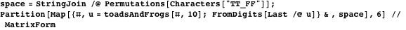 TT_FF → T_TFF → TFT_F → TFTF_ → TF_FT →_FTFT → F_TFT → FFT_T → FF_TT.