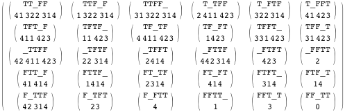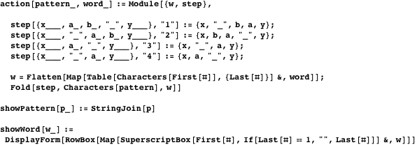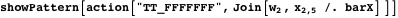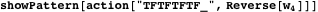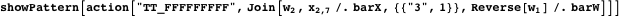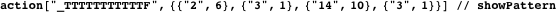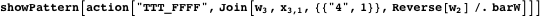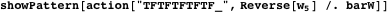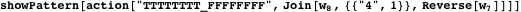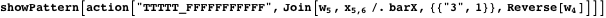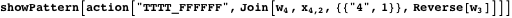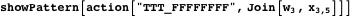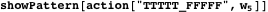 , where each of their members will be one of “T”, “F”, or “_” and only one occurrence of the underscore is allowed and required. Their action by a word will be computed by the function action. In order to display patterns and words more concisely, we use predicates showPattern and showWord (for an alternative way regarding the design of the latter, see [6]).
