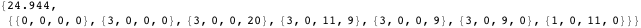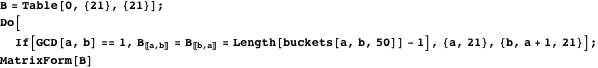 The following is a table of the length of the solutions corresponding to all possible combinations of the values