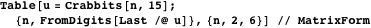 Compiling a table of solutions for the cases of up to five rabbits, we obtain: