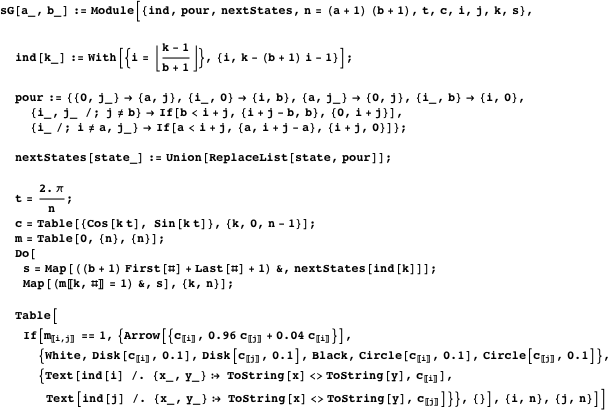 The next function helps to visualize the entire state space involved in solving the problem of the buckets. We associate a labeled disk with each state