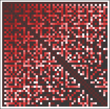 Enlarging the possible size of the buckets and assigning a cherry tone to the length of the solutions leads to the following picture.