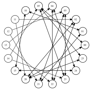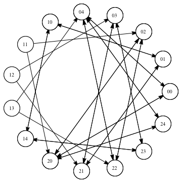 , the following graph shows that the goal states are inaccessible from 00. In fact this graph is the superposition of two graphs formed by those states reachable and unreachable from 00.