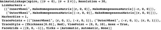 in became explicitly derived parameters as a result of the ReplaceDrivingVariables function. The spirograph mechanism describes a family of similar mechanisms differing only in the substitution value of the geometric parameters. To select one mechanism from the family, set a new numerical value to the parameter that will be substituted in the numerical calculations.