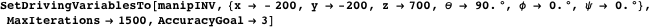 The solution of the IKP is one of the most challenging problems in manipulator design. The problem is formulated as follows: given the desired position and orientation of the tool relative to the reference coordinate frame, calculate the set of joint angles that moves the tool into this posture. Numerous solution techniques have been developed that range from numerical solutions to closed form solutions. For a summary of the existing techniques, consult any standard textbook on robotics [4, 5]. In this section, a shortcut solution will be presented that enables the designer to quickly solve the inverse kinematic equation. This solution is based on simple replacements of the driving variables and utilizes the same ReplaceDrivingVariables function that was employed in the previous section.