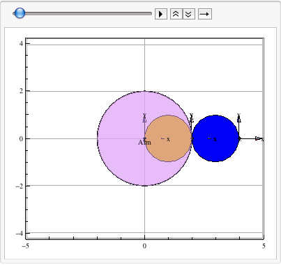 In this example, a spirograph having an inner and outer planet wheels is built. Both wheels have the same radius