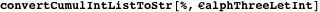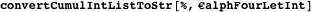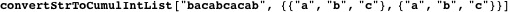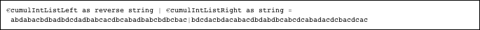 To save memory and to make the computations as fast as possible, the final calculations in fact use symbols instead of strings. The cumulative integer lists are associated to symbols by using rules. Moreover, to save memory, the permutations are added only when needed. In the following example, we show a rule from symbols to cumulative integer lists (in an abbreviated form).