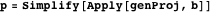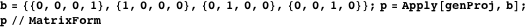 The approach can be generalized to the four-dimensional case and we give the following code to compute the matrix of a parallel projection. Here s is the direction of the projection line and b stands for the basis vectors of the three-dimensional image space.