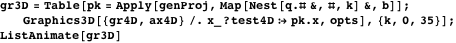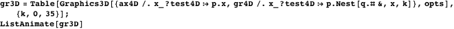 and with Manipulate we get an animation in which the user may change the viewing direction in four dimensions—that is, fly freely around the graph.