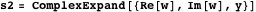 Here w is the four-dimensional expression of the function with x and y as variables. For example,
