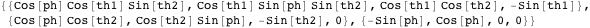 where th1, th2, and ph are the three angles of spherical coordinates. The three-dimensional image space is the orthogonal complement of this direction. It is spanned by the following orthonormal vectors: