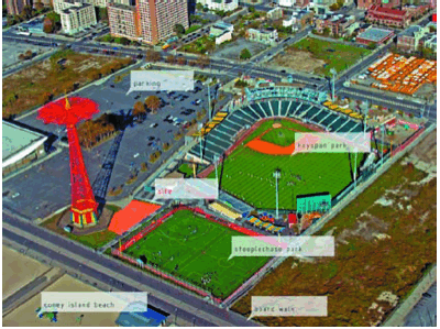 The final project was a proposal for the Parachute Pavilion on Coney Island and the analysis of the structural performance of minimal surfaces. In this project for Coney Island, the brief asked for a pavilion to be sited at the base of the historic parachute ride. The program is composed of public viewing, dining, and retail, as well as private rental and dining facilities. The project incorporated the surface logic of the Riemann minimal surface. Topologically the surface acts as a spatial knot of circulation that negotiates the public and private programs vertically three levels through the boardwalk. This knot creates an ambiguous relationship between the iconic and figural singularities of the popular rides of the theme park and the infrastructural ground condition of the boardwalk. The kaleidoscopic patching of the minimal surface is directly translated into prefabricated local modules that mirror and rotate to form the trunk for the cantilevered pavilion.