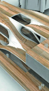 In the last 10 years, the availability of personal computers and the advance in processing power have enabled architects everywhere to generate and manipulate complex surfaces with ease in the digital realm. At first, architects integrated three-dimensional software with advanced rendering and dynamic packages from the movie industry. The resultant surfaces were usually smooth, semi-transparent, and seductively rendered products. Initially, there was an attempt to legitimate such surface generation through postmodern processes of semiotics or collage. Typical projects in this realm attempted to use and form surfaces by embedding external indexes or traditional manual art and sculpture techniques. Regardless of whether the metaphoric import was that of stock market trends, animated site flows, or expressionistic dynamism, the surface technique rarely varied. In order to create a continuous blending of these external logics, the technique defaulted to freeform lofting. Furthermore, the digital translation of such external logics usually resulted in a numerical set that allowed little more than a variety in narrative for the generation of similar forms in which global syntactical principles of the index rarely provided any internal local logics to build upon. If the projects advanced further into the physical material realm, reductive orthogonal conventions such as Cartesian sectioning were needed to provide a clear formal understanding of the logic outside of the creation of the surface. This just continued to typify the predictability of such projects. If the formal translation of surfaces generated by external logics will eventually default into Cartesian bread-slicing, then there are only two options to pursue for the surfaces to exist materially. The first is to accept the Cartesian slicing and start with it as a generator. The second is to generate surfaces by logic inherent to their formation.