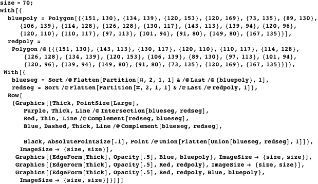 - Throw out dashed edges, and color the resulting polygon(s) red.