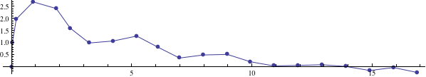 , the chain will maintain an inverted L shape until exactly half of it has left the desktop, and only then start building the characteristic bulge of the final solution [3, 4]. This is to a good approximation true even with our 21 points, as we can see by displaying the chain’s shape after 10 particles have left the tabletop.