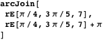 We use Join to concatenate a list of replacement rules and so concatenate the resulting polygonal arcs. The function arcJoin defined here can be used to construct a sequence of concatenated polygonal arcs when x is replaced by a sequence of replacement rules.