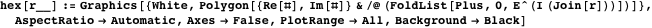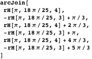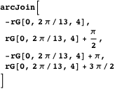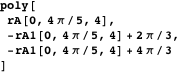 The polygonal arcs constructed by the above method do not always form the boundary of a polygon. However, interesting graphics may sometimes be obtained by applying Polygon to the list of vertices. The function poly defined below can be used to construct such a graphic.