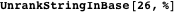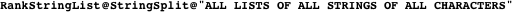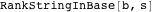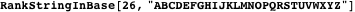 -symbol strings in the specified order (sorted with shorter strings first, alphabetically within each string length), giving a “standard order” for listing these strings without omissions. But notice that RankStringInBase and UnrankStringInBase do not generate this (infinite!) list and look for a match or pick out an element, rather they build the string from the index or deduce the index from the string, respectively.