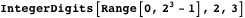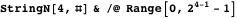 -symbol strings, starting with 0. For