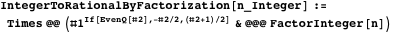 . But the same can be said of all possible numerators and denominators of rational numbers, and furthermore, when a fraction is reduced to lowest terms no prime factor will appear in both the numerator and the denominator, a fact that motivates the following algorithm, in which odd exponents define factors of the numerator and even exponents define factors of the denominator.