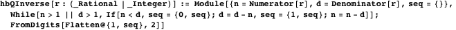 Besides containing no duplicate or unreduced fractions, this ordering has the property that fractions with a small numerator and denominator tend to appear before those with larger ones. An inverse function can be created using the hyperbinary numbers as a look-up table, but musings in [10] motivate a more direct approach. Consider the numerator