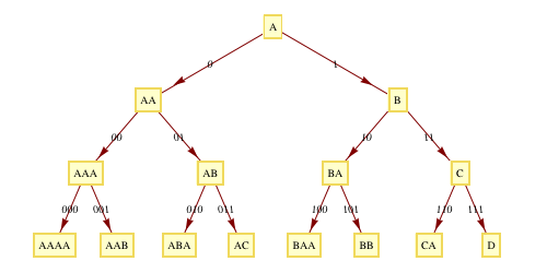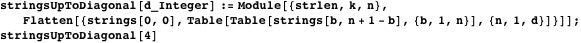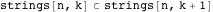 How can we do something similar with strings of any length and any alphabet size? Suppose we lay out subsets of strings having