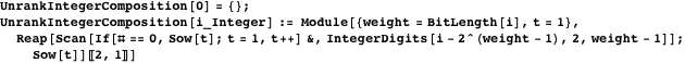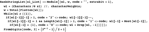 We wrap this functionality in the function UnrankStringList. It first identifies the weight group