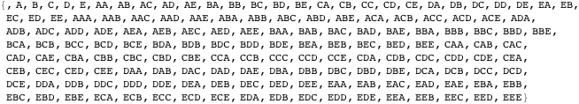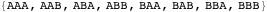 To generate a list of all possible strings of length three and made up of the characters A and B, the obvious method would be to think of a binary odometer having three positions, each able to display an A or a B—or a 0 or a 1. This is the normal increasing order of the first