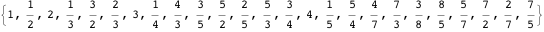 . This means that we do not need to generate the whole list at once; we can proceed one step at a time, perhaps testing or making some use of the fractions as they are generated. A small modification to the successor algorithm lets us easily bypass duplicates: if the successor found is not a fraction reduced to lowest terms, advance to its successor. This can be implemented in this way as two-element lists. - The existence of rank and unrank functions, to convert back and forth between the list and an ordered list of integers. (Given such functions, the definition for