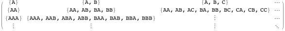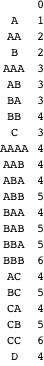 , providing an index into the sequence of strings, which appear in alphabetical order. But suppose we want to include all two-symbol strings, no matter what length? One possible ordering is the following.