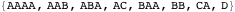 These are all strings of length less than five on an alphabet of two symbols. We use