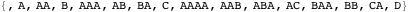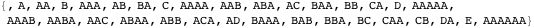The pattern is: list all length-zero strings, then all length-one strings, then all length-two strings, then all length-three strings, etc. For a given length, go through the strings as you would odometer readings, changing the rightmost character most frequently, and others when the character to the right “rolls over.” Notice that the ordering is not alphabetic; if it were it would start with