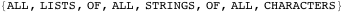 In this implementation the functions only recognize the uppercase characters A-Z, but assuming access to some universal character list (not necessarily finite, just countable), all lists of all strings of all characters will appear in our list. Here is an example.