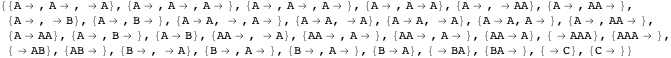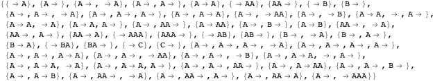 rules, creating additional rulesets with the same total weight. So our simple list of string lists of a given weight should be extended by the insertion of empty strings—but should they be allowed at all positions? Let us consider the ramifications of including empty strings for a moment.
