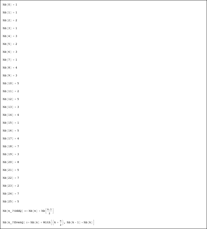 in the recursion calls is Mathematica‘s standard method (called memoization) of saving the results of a function call so that it will not need to be recalculated after the first time. Its effect can be seen by executing