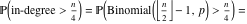 tends to 1. We can prove the same for the out-degrees, so all of the degrees will be greater than