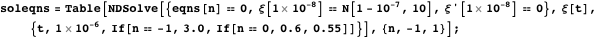 we apply DSolve; Mathematica fails to produce symbolic solutions. We then apply NDSolve along with the relevant initial conditions, namely,