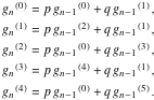 symbols (where i ranges from 1 to n) and, whenever a full match results, adds the product of the corresponding powers of p and q to h. The last line converts the resulting h to