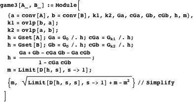 Again, the same computation can be achieved much more easily by modifying the last line of game. This then returns both the expected value and standard deviation of the game’s duration.