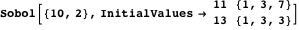 , respectively. The choice of initial values is the one area of discretion left to the modeler. Indeed, the choice of initial values is the most important issue in successful application of Sobol sequences.