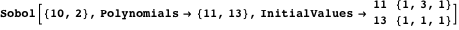 element in the same sequence. The function Sobol has the following options, which are listed with their default values: