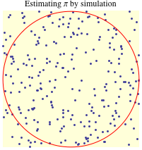 is to throw darts randomly at a circular target inscribed in a square, and count the proportion that land inside the circle. These are simple examples of numerical integration by simulation.