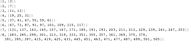 initial values, odd integers less than