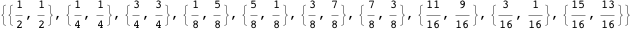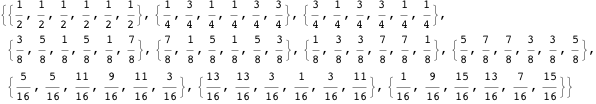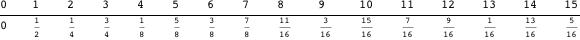 is a valid set of direction numbers for generating the first 63 elements of a one-dimensional Sobol sequence. Here are the first 16 elements of this sequence.
