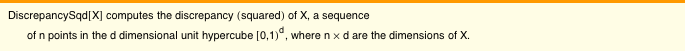These calculations are implemented in the functions DiscrepancySqd and StarDiscrepancySqd.
