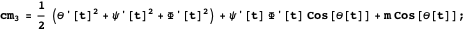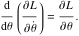 We now use the Lagrange technique to find the corresponding equations for the three Euler angles. The kinetic energy of the top equals one-half of the scalar product of its angular velocity with its angular momentum, as its motion is purely rotational. In the rotating frame (this is when it becomes handy), this equals