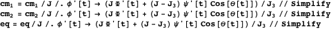 where the first term of each right-hand side is a constant, the second term remains time dependent, and